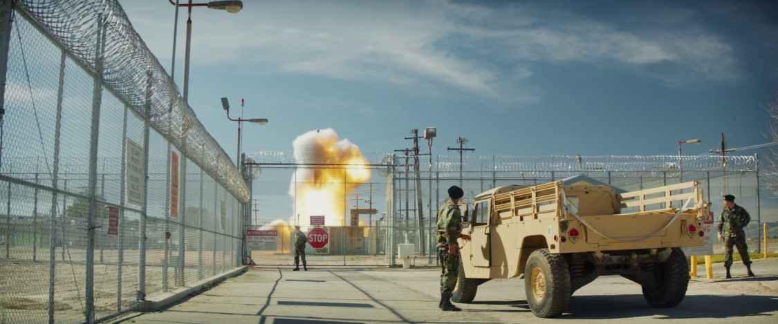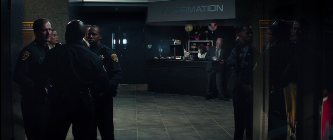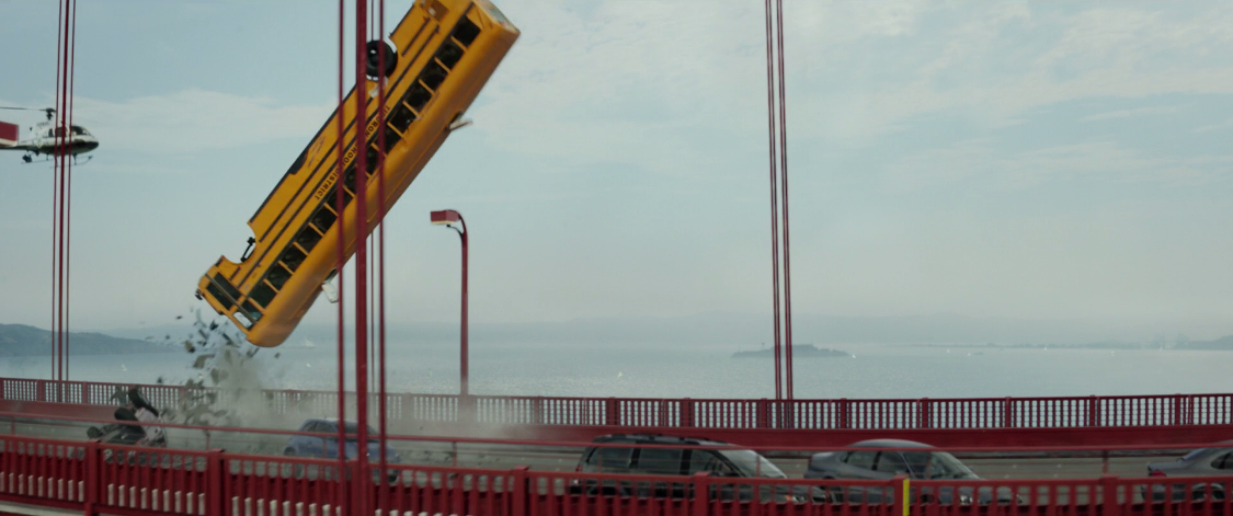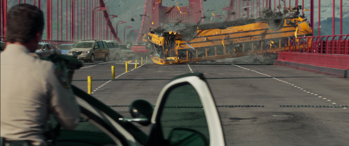 The 2D picture quality is superb. Shot using an Arri Alexa XT Plus camera and stored as uncompressed ARRIRAW 3.4 K, the picture is crystal clear and life like. The first opening shots of green fields and trees looked as though you could reach out and touch them. Flawlessly clear. However, aside from a few other moments in the movie, and particularly the action piece on the golden gate bridge, there are few moments in the movie that are well lit. A lot happens at night, or in the shadows. These shots look great though and there was no sign of any loss of definition in low light. Skin tones were natural, colors was not over saturated. Comparing to T2, which has the trademark use of blue-steel hues in the night scenes that Cameron prefers, the night scenes here were more natural. I like that cool, steely blue look though and I think it would have been effective here. But then I would say that director Alan Taylor, was just ripping of Cameron’s style! I do want to give some proper credit to Alan Taylor. I find it rare these days to find a film that makes use of the full, wide canvas available to them. All too often things are centered on the screen, but Taylor has gone to great lengths to fill the image from edge to edge. The movie is beautiful, quite frankly. Take a look at the gallery below, and you will notice that the shots provide depth from foreground to background by providing elements at each end of the image. For example, the shot with the bus in the background right, and the police officer in the left foreground. Another shot I liked was the hospital entrance, you can see it below. There are police officers on the left, their reflections on the right, it is an overall dark image with a pop of red on the far right. Terminator: Genisys is a wonderfully framed cinematic experience that is reference quality.
